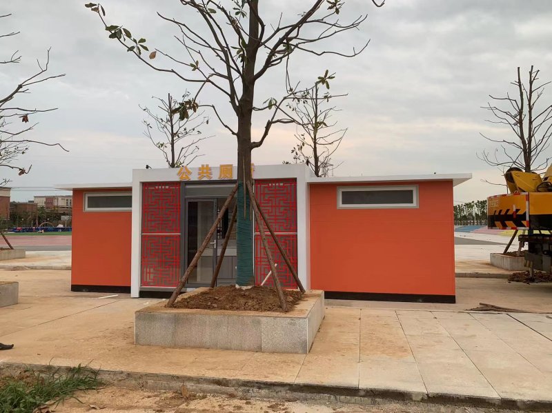 拼裝廁所;在廠里做好各個廁所部件,再到現(xiàn)場組裝在一齊,適合不易運輸?shù)拇笮蛶_@座箱式廁所,女廁5個蹲位內(nèi)配工具間,男廁2個蹲位+2小便斗,第三衛(wèi)生間由殘疾馬桶、助力洗手盆和兒童馬桶、兒童洗手盆外加嬰兒臺等設施。廁所前后有窗,通風采光,前部走廊裝有屋檐,防雨防曬。此廁所位于公路綠道邊,整體大氣,功能齊全,造型美觀,是一道難得的靚麗景觀!